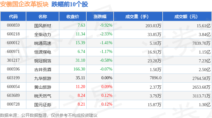 证券之星消息,11月28日安徽国企改革板块较上一交易日上涨0.99%,晶合集成领涨。当日上证指数报收于3888.6,上涨0.34%。深证成指报收于12984.08,上涨0.85%。安徽国企改革板块个股涨跌见下表: