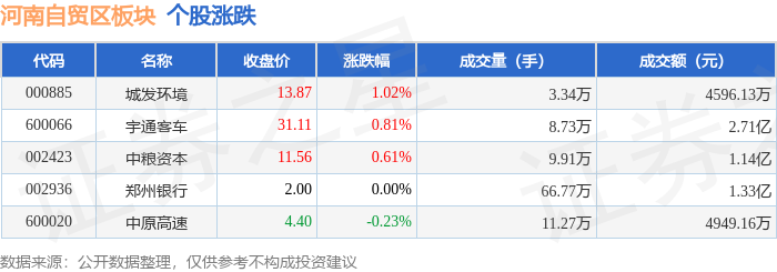 从资金流向上来看,当日河南自贸区板块主力资金净流出2153.53万元,游资资金净流入771.14万元,散户资金净流入1382.39万元。河南自贸区板块个股资金流向见下表: