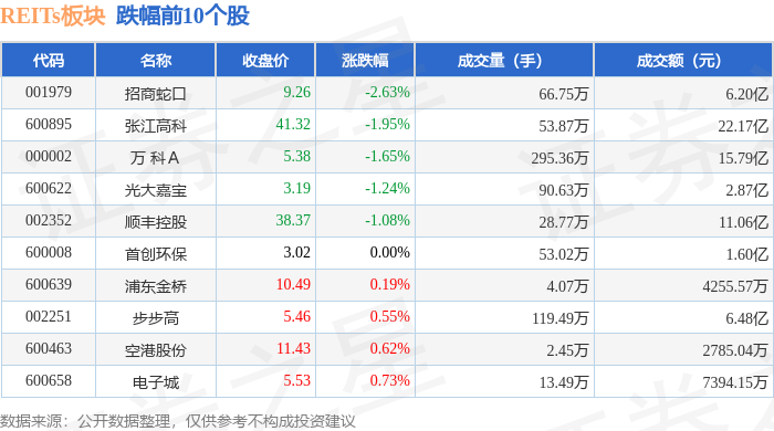 证券之星消息,11月28日REITs板块较上一交易日下跌1.05%,招商蛇口领跌。当日上证指数报收于3888.6,上涨0.34%。深证成指报收于12984.08,上涨0.85%。REITs板块个股涨跌见下表: