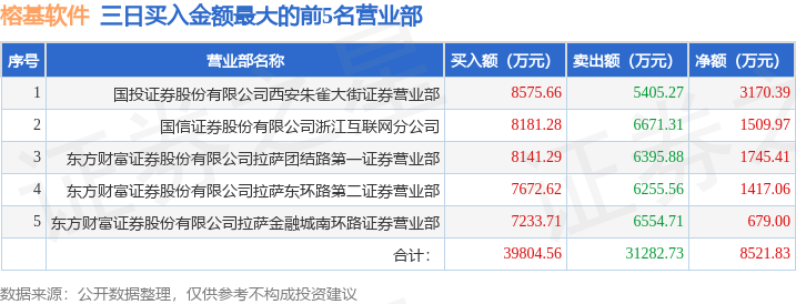 证券之星消息,沪深交易所2025年11月28日公布的交易公开信息显示,榕基软件(002474)因连续三个交易日内,跌幅偏离值累计达到20%的证券登上龙虎榜。此次是近5个交易日内第5次上榜。