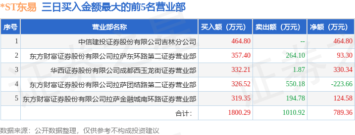 证券之星消息,沪深交易所2025年11月28日公布的交易公开信息显示,*ST东易(002713)因连续三个交易日内,跌幅偏离值累计达到12%的ST证券、*ST证券和未完成股改证券登上龙虎榜。此次是近5个交易日内第2次上榜。