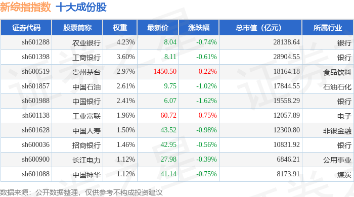 证券之星消息,11月28日,新综指(000017)指数报收于3286.9点,涨0.34%,成交6366.57亿元,换手率0.94%。当日该指数成份股中,上涨的有1685家,航天环宇以20.0%的涨幅领涨,下跌的有453家,德科立以8.69%的跌幅领跌。