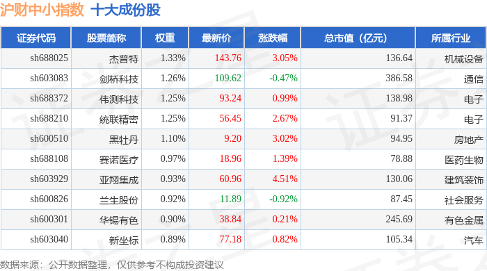 证券之星消息,11月28日,沪财中小(000091)指数报收于14095.59点,涨1.22%,成交353.31亿元,换手率1.87%。当日该指数成份股中,上涨的有162家,秦安股份以10.02%的涨幅领涨,下跌的有29家,中曼石油以3.48%的跌幅领跌。