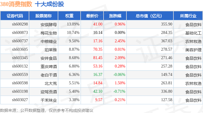 证券之星消息,11月28日,380消费(000108)指数报收于12318.01点,涨0.69%,成交30.23亿元,换手率0.73%。当日该指数成份股中,上涨的有13家,中粮糖业以2.45%的涨幅领涨,下跌的有5家,豪悦护理以1.61%的跌幅领跌。