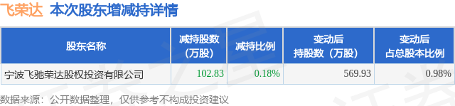 证券之星消息,11月28日飞荣达发布公告《飞荣达:关于控股股东、实际控制人及其一致行动人权益变动触及1%整数倍的提示性公告》,其股东宁波飞驰荣达股权投资有限公司于2025年11月25日至2025年11月27日间合计减持102.83万股,占公司目前总股本的0.1767%,变动期间该股股价上涨3.71%,截止11月27日收盘报27.96元。