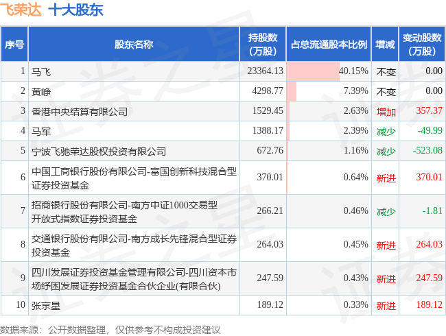 根据飞荣达2025年三季报公布的十大股东详情如下: