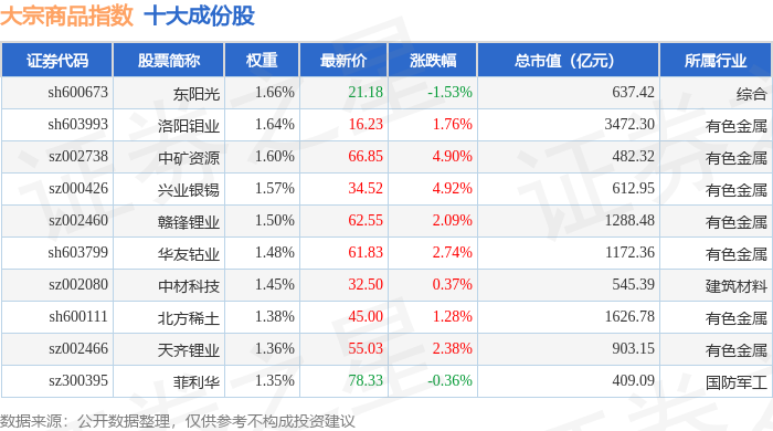 证券之星消息,11月28日,大宗商品(000979)指数报收于6331.88点,涨1.06%,成交762.6亿元,换手率0.64%。当日该指数成份股中,上涨的有73家,厦门钨业以5.68%的涨幅领涨,下跌的有22家,合盛硅业以1.68%的跌幅领跌。