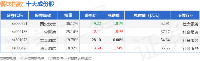 证券之星消息,11月28日,餐饮指数(399238)报收于1455.32点,跌0.02%,成交7.46亿元,换手率4.52%。当日该指数成份股中,上涨的有2家,华天酒店以1.74%的涨幅领涨,下跌的有1家,西安饮食以1.91%的跌幅领跌。
