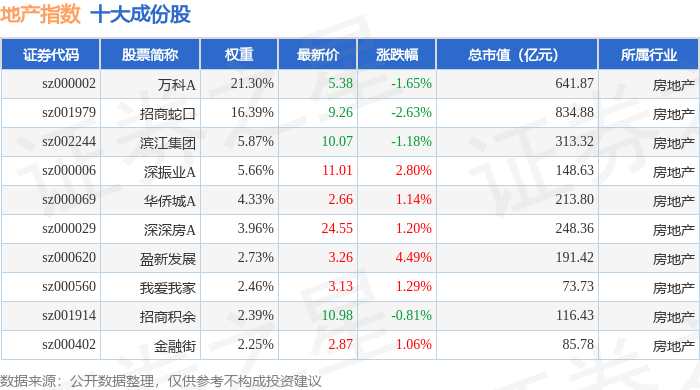 证券之星消息,11月28日,地产指数(399241)报收于1262.04点,涨0.37%,成交112.3亿元,换手率3.49%。当日该指数成份股中,上涨的有30家,世联行以10.18%的涨幅领涨,下跌的有5家,招商蛇口以2.63%的跌幅领跌。