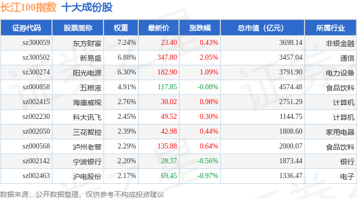 资金流向方面,长江100(399278)指数成份股当日主力资金净流入合计16.4亿元,游资资金净流出合计6.81亿元,散户资金净流出合计9.59亿元。成份股资金流向详情见下表: