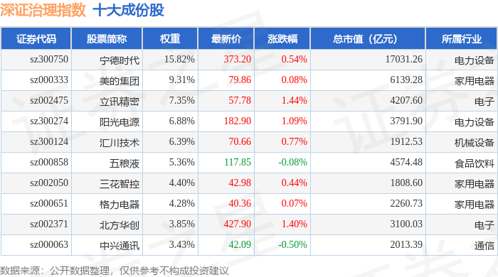 深证治理(399328)指数十大成份股详情如下: