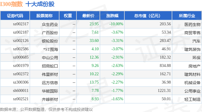 资金流向方面,I300(399416)指数成份股当日主力资金净流出合计8.05亿元,游资资金净流出合计5580.39万元,散户资金净流入合计8.61亿元。成份股资金流向详情见下表: