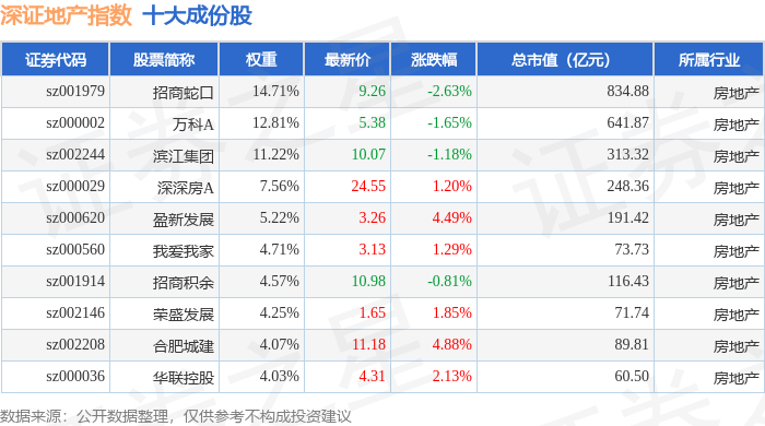 证券之星消息,11月28日,深证地产(399637)指数报收于1808.74点,涨0.48%,成交74.96亿元,换手率3.26%。当日该指数成份股中,上涨的有16家,合肥城建以4.88%的涨幅领涨,下跌的有4家,招商蛇口以2.63%的跌幅领跌。