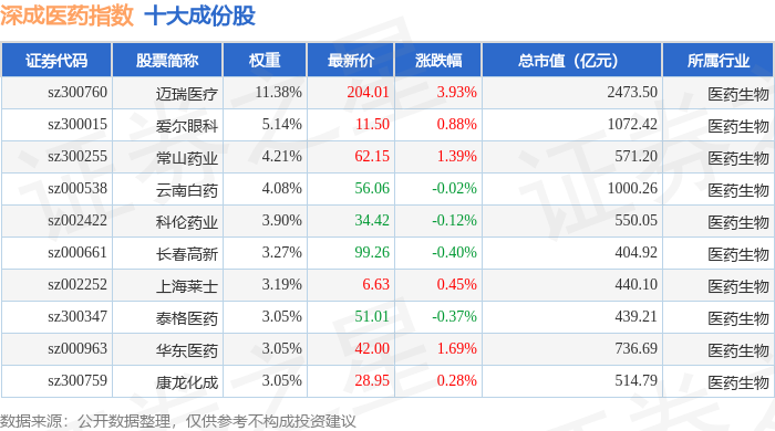 证券之星消息,11月28日,深成医药(399685)指数报收于1690.71点,涨0.72%,成交136.55亿元,换手率0.79%。当日该指数成份股中,上涨的有29家,海思科以4.43%的涨幅领涨,下跌的有25家,华兰疫苗以6.6%的跌幅领跌。