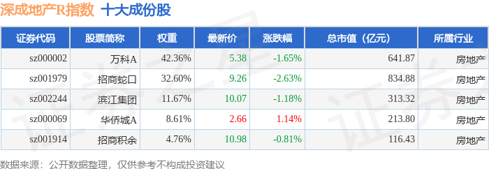 深成地产R(471001)指数十大成份股详情如下: