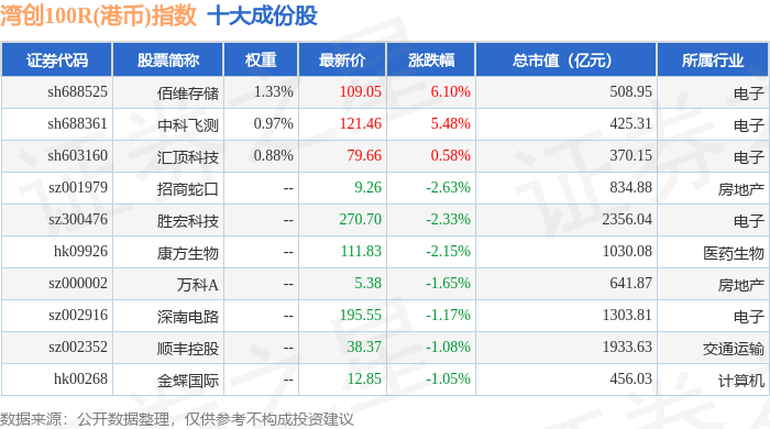 湾创100R(港币)(480002)指数十大成份股详情如下: