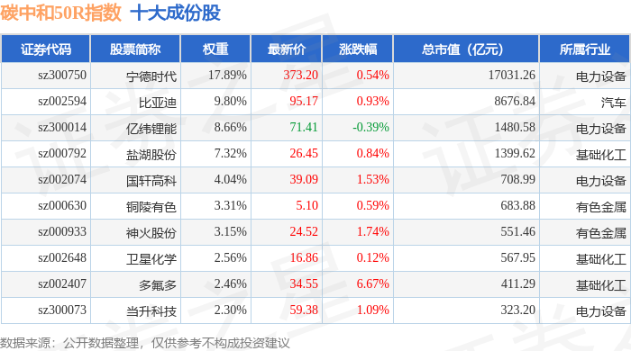 碳中和50R(480021)指数十大成份股详情如下: