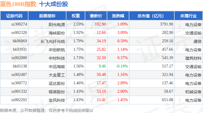 蓝色100R(480068)指数十大成份股详情如下: