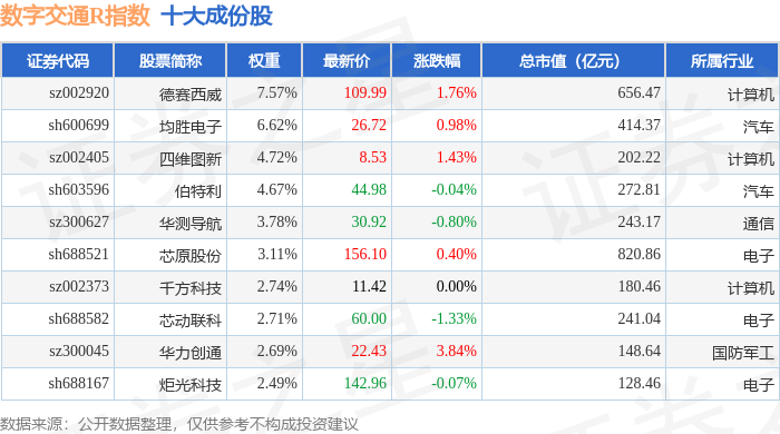 证券之星消息,11月28日,数字交通R(480075)指数报收于3262.22点,涨1.15%,成交234.92亿元,换手率1.87%。当日该指数成份股中,上涨的有39家,华阳集团以6.93%的涨幅领涨,下跌的有9家,盛视科技以1.96%的跌幅领跌。
