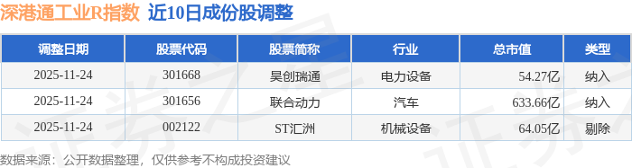 近10日内深港通工业R(483017)指数成份股做了调整,新纳入了2只股票,剔除了1只股票。