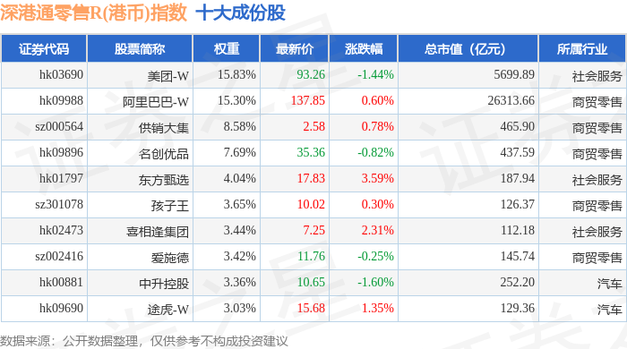 深港通零售R(港币)(483074)指数十大成份股详情如下: