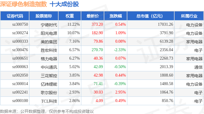 深证绿色制造(970069)指数十大成份股详情如下: