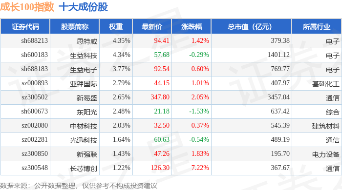 近10日内成长100(980080)指数成份股做了调整,新纳入了50只股票,剔除了50只股票。