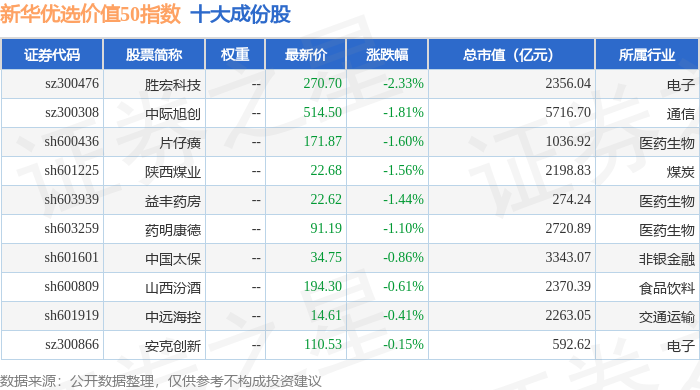 资金流向方面,新华优选价值50(989004)指数成份股当日主力资金净流出合计9685.5万元,游资资金净流出合计6.06亿元,散户资金净流入合计7.03亿元。成份股资金流向详情见下表: