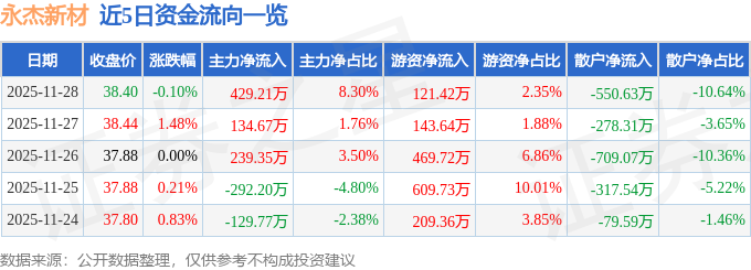 11月28日的资金流向数据方面,主力资金净流入429.21万元,占总成交额8.3%,游资资金净流入121.42万元,占总成交额2.35%,散户资金净流出550.63万元,占总成交额10.64%。