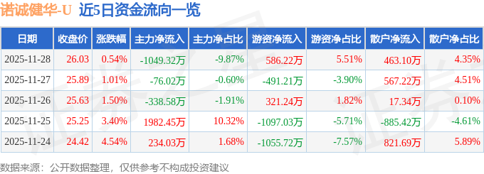 证券之星消息,截至2025年11月28日收盘,诺诚健华(688428)报收于26.03元,上涨0.54%,换手率1.53%,成交量4.1万手,成交额1.06亿元。