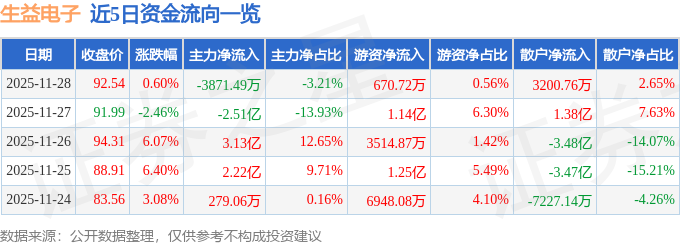 证券之星消息,截至2025年11月28日收盘,生益电子(688183)报收于92.54元,上涨0.6%,换手率1.58%,成交量13.15万手,成交额12.07亿元。