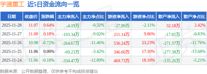 11月28日的资金流向数据方面,主力资金净流出4.19万元,占总成交额0.32%,游资资金净流出27.99万元,占总成交额2.11%,散户资金净流入32.18万元,占总成交额2.42%。