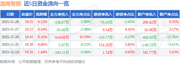 11月28日的资金流向数据方面,主力资金净流出130.27万元,占总成交额5.9%,游资资金净流出76.16万元,占总成交额3.45%,散户资金净流入206.42万元,占总成交额9.35%。