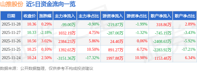 证券之星消息,截至2025年11月28日收盘,山推股份(000680)报收于10.36元,上涨0.29%,换手率0.81%,成交量10.7万手,成交额1.1亿元。