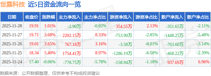 证券之星消息,截至2025年11月28日收盘,世嘉科技(002796)报收于19.91元,上涨1.01%,换手率3.71%,成交量8.45万手,成交额1.67亿元。