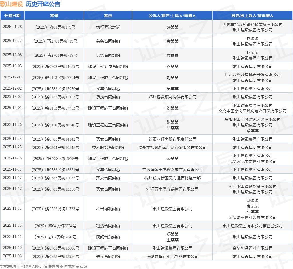 证券之星消息,根据天眼查APP显示,近日公布了一则歌山建设集团有限公司作为被告/被上诉人的开庭公告,详细内容如下: