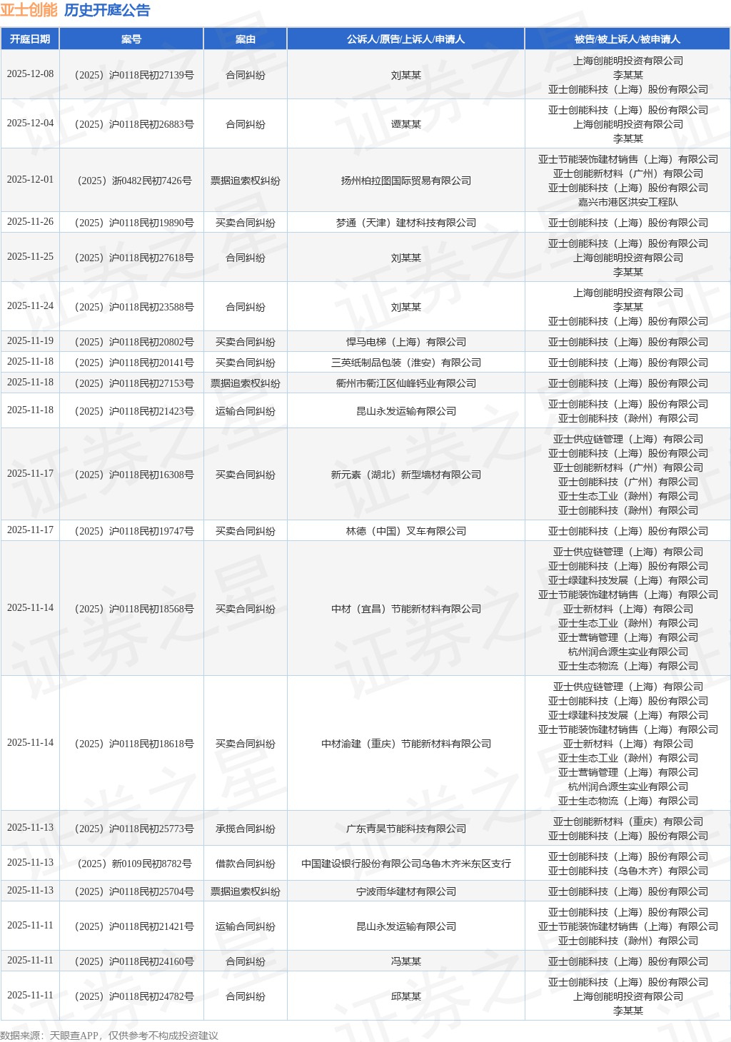 证券之星消息,根据天眼查APP显示,近日公布了一则亚士创能科技(上海)股份有限公司作为被告/被上诉人的开庭公告,详细内容如下: