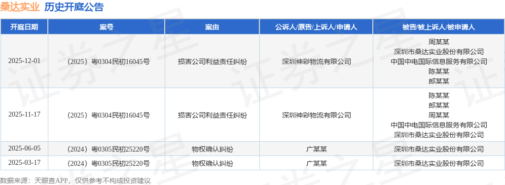 根据统计,近一年内以深圳市桑达实业股份有限公司为当事人的历史开庭公告有4则,其中案由为“损害公司利益责任纠纷”的公告以2则居首,其次为“物权确认纠纷”有2则。历史开庭公告如下: