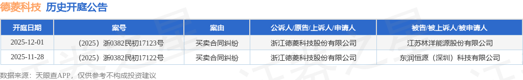 证券之星消息,根据天眼查APP显示,近日公布了一则浙江德菱科技股份有限公司作为原告/上诉人的开庭公告,详细内容如下: