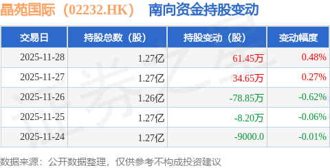 证券之星消息,11月28日南向资金增持61.45万股晶苑国际(02232.HK)。近5个交易日中,获南向资金增持的有2天,累计净增持8.15万股。近20个交易日中,获南向资金增持的有13天,累计净增持1020.9万股。截至目前,南向资金持有晶苑国际(02232.HK)1.27亿股,占公司已发行普通股的4.46%。