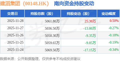 证券之星消息,11月28日南向资金增持25.3万股建滔集团(00148.HK)。近5个交易日中,获南向资金减持的有4天,累计净减持24.85万股。近20个交易日中,获南向资金减持的有14天,累计净减持117.8万股。截至目前,南向资金持有建滔集团(00148.HK)5061.8万股,占公司已发行普通股的4.56%。