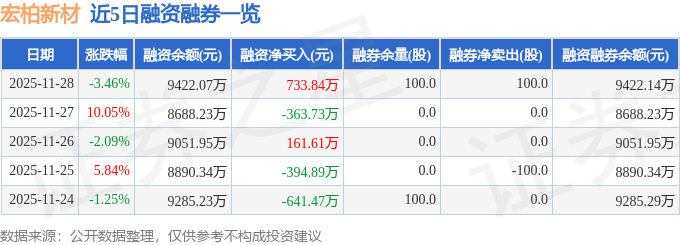 证券之星消息,截至2025年11月28日收盘,宏柏新材(605366)报收于6.98元,下跌3.46%,换手率10.78%,成交量70.1万手,成交额4.99亿元。