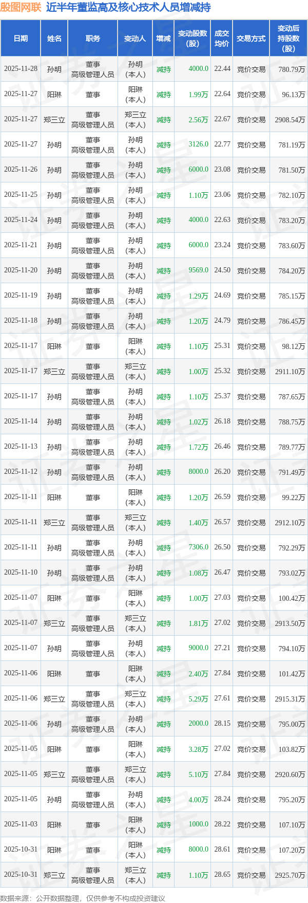 殷图网联近半年内的董监高及核心技术人员增减持详情如下: