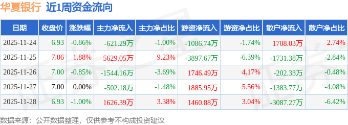资金流向数据方面,本周华夏银行主力资金合计净流入4587.81万元,游资资金合计净流入108.91万元,散户资金合计净流出4696.72万元。本周资金流向一览见下表: