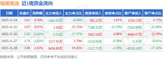 资金流向数据方面,本周福建高速主力资金合计净流入1.15亿元,游资资金合计净流出5647.82万元,散户资金合计净流出5874.22万元。本周资金流向一览见下表:
