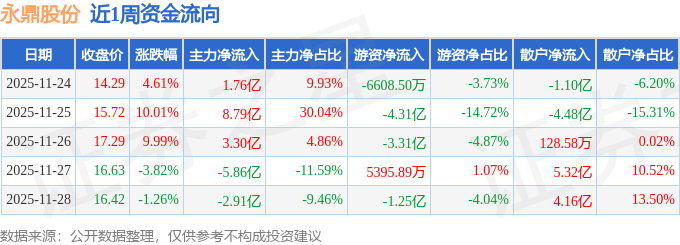 资金流向数据方面,本周永鼎股份主力资金合计净流入5.08亿元,游资资金合计净流出8.99亿元,散户资金合计净流入3.91亿元。本周资金流向一览见下表:
