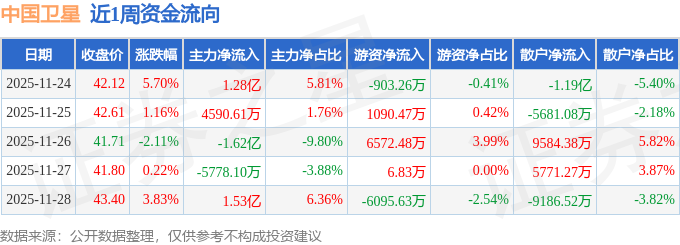 沪深股通持股方面,截止2025年11月28日收盘,中国卫星沪股通持股数为1195.46万股,占流通股比为101.0%。