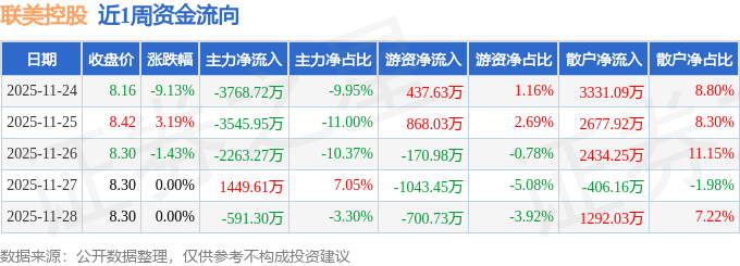 资金流向数据方面,本周联美控股主力资金合计净流出8719.62万元,游资资金合计净流出609.51万元,散户资金合计净流入9329.13万元。本周资金流向一览见下表: