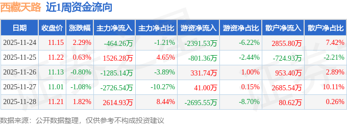 资金流向数据方面,本周西藏天路主力资金合计净流出334.73万元,游资资金合计净流出5515.71万元,散户资金合计净流入5850.44万元。本周资金流向一览见下表: