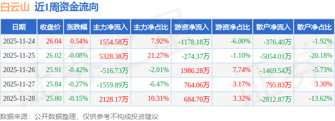 资金流向数据方面,本周白云山主力资金合计净流入6934.51万元,游资资金合计净流入1982.49万元,散户资金合计净流出8916.99万元。本周资金流向一览见下表: